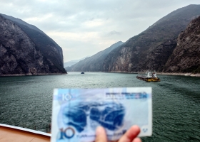 14:30—15:00 游輪經(jīng)過瞿塘峽。您可在六樓陽光甲板傾聽導(dǎo)游現(xiàn)場(chǎng)解說,親身感受“夔門天下雄”的磅礴氣勢(shì)(新版十元人民幣背面的圖案)。