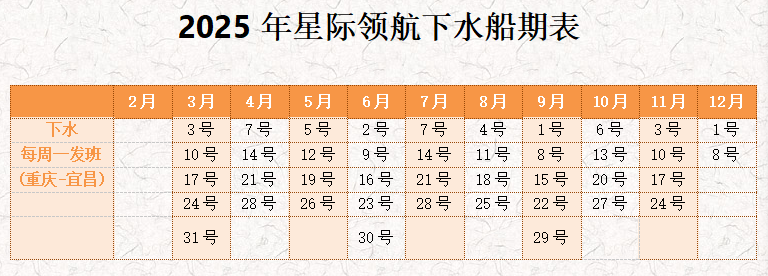 2025年星際領(lǐng)航重慶到宜昌下水船期表