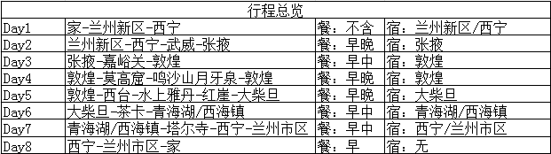 兩種出行方案:西寧抵達客人當天動車/汽車到蘭州或隔天早上動車/汽車抵張掖。隔天到張掖的客人不參觀雷臺公園,免費景點,不退不換。