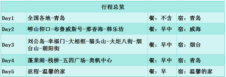 【歡樂集結】來自全國各地的游客們,歡迎您抵達【青島膠東國際機場】,到達后,我們的工作人員將在青島膠東國際機場接站牌處迎接您,隨后您將乘坐我社專車至酒店,我社工作人員會協助您辦理入住,入住后游客可自行游覽青島。參考航班:DZ626915:45-18:00(以實際出票為準)請您務必提前告知您來回青島選擇的航班/火車時間,方便我們安排接機工作人員,接機工作人員會在您出發(fā)前一天20:00之前與您聯系,告知具體接機事宜,請保持手機暢通,耐心等待。