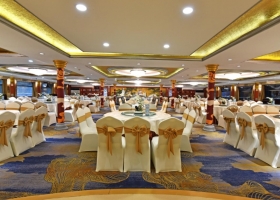 1、首創雙圓弧造型自助餐臺,餐廳弧形舷窗可開啟通風,還設有大型豪華水族箱,設計特別。