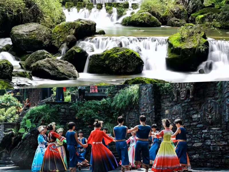 10:10- 14:30:下船游覽山上人家(石令牌、 巴王宮、茶鹽古道非遺傳承一條街、巴王寨,三棵樹廣場觀看演出)。自理中餐后游覽龍津溪(龍溪橋、鵲橋、婚嫁樓表演、峽江號子、迎賓表演)。