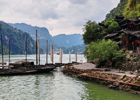 10:30- 12:00:換乘景區中轉車前往胡金灘碼頭,渡船過江后游覽山上人家(石令牌、 巴王宮、茶鹽古道非遺傳承一條街、 巴王寨,三棵樹廣場觀看演出)。