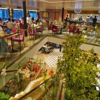餐飲設(shè)施:2、3樓有雙層環(huán)球餐廳,提供中西式自助餐。更高一層的帕沃利昂餐廳是套房乘客專屬的VIP餐廳,裝飾豪華,菜品豐富。
