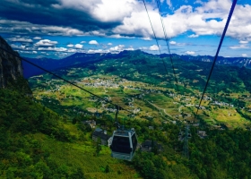 恩施大峽谷客運索道是湖北省恩施州第一條單線循環脫掛抱索器索 道,其選址位于恩施大峽谷云龍河大橋東側至小樓門,共設計上下兩個站房。上站房位于小樓門“龍門石浪”西北側的山坡上,地形標高1641米;下站房位于云龍河大橋東側臺地,地形標高841米,站址地形平坦開闊。索道線路沿云龍河峽谷西側山坡上行,通過倒灌水上方經小樓門“踏浪亭”南側埡口到達上站。索道線路全長2284米,線路高差792米。采用全封閉式8人轎廂,轎廂總數量61個,醉高運行速度6米/秒,單程運行時間約6.27分鐘,減少768級天梯,節約游覽路程2公里。設計運輸量為2000人/小時。恩施大峽谷客運索道是全法國進口的索道,是云龍地縫景區通往七星寨景區的重要交通工具,安全舒適,乘坐索道,讓登山變得輕而易舉,使得游客能夠全身心體驗仙人般的境界,新的動態觀景方式,讓游客倍受動景的快樂!